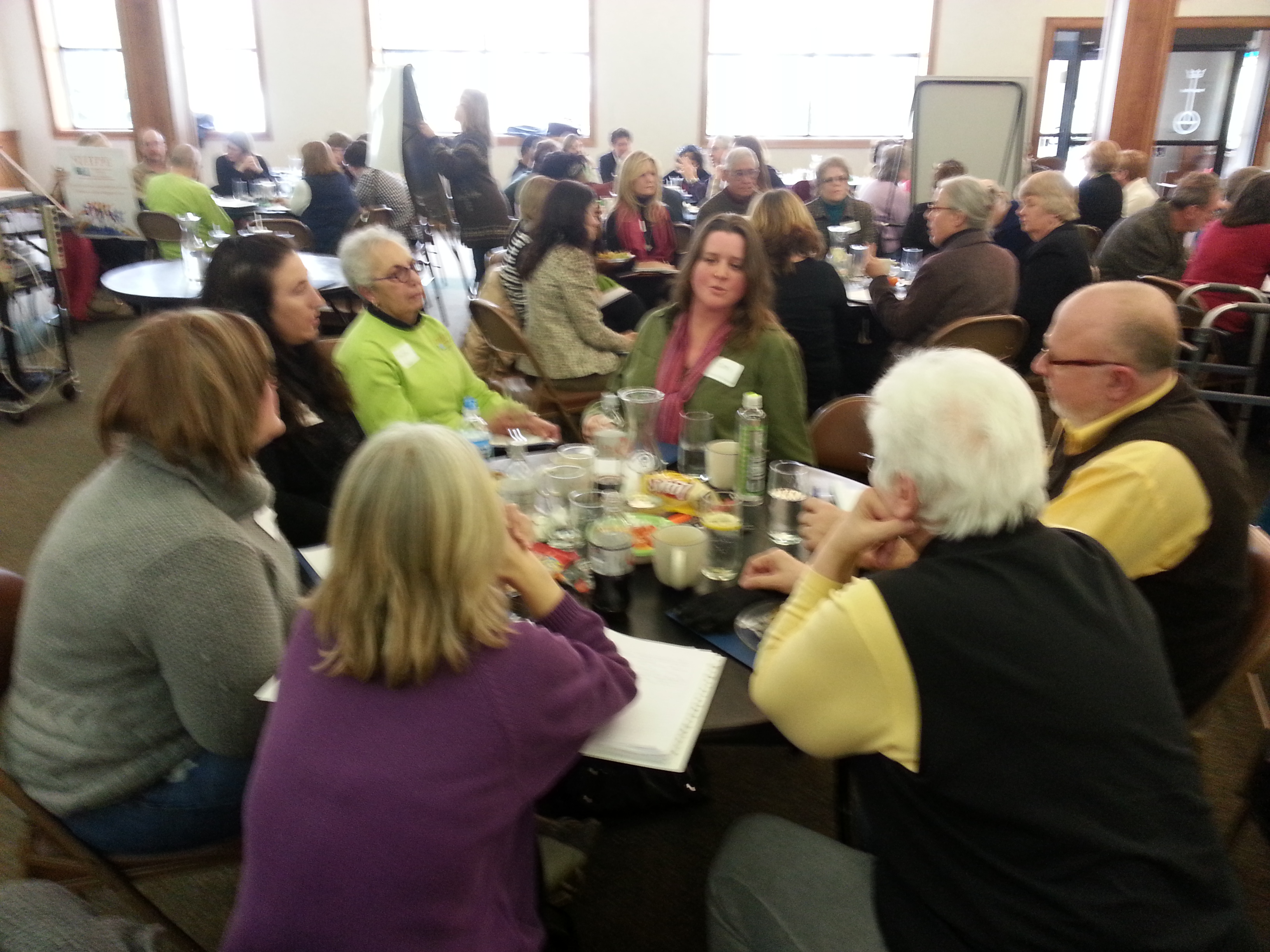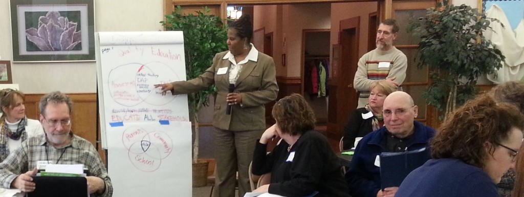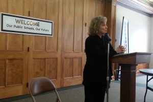 After that inspiring speech, we moved to the discussion portion of our event. In the first breakout session, we asked the people to form small groups at tables and introduce themselves. Then each person talked about what concerned them most about public education. We reported back in the large group, and the results were not surprising. Issues raised in the breakouts ranged from the negatives of inequality of funding and resources, privatization including charter school expansion and vouchers, too much testing, and corporate and big money influence over school reform, to the positives of high quality education, parent-teacher cooperation, and developmentally appropriate instruction.